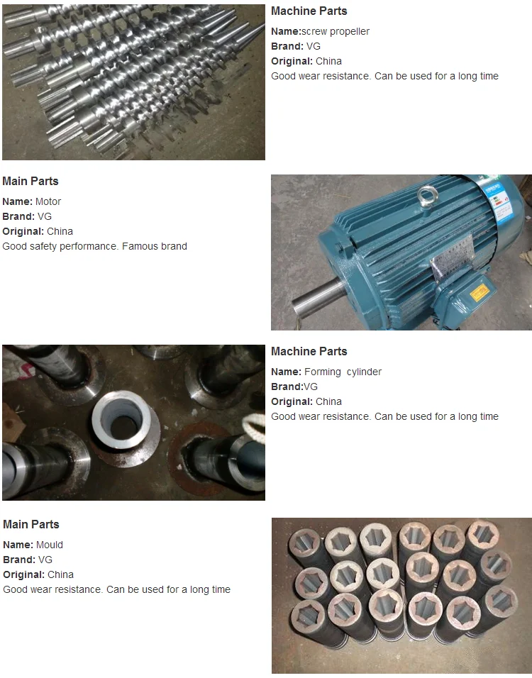 5) Rice husk,wood ,sawdust,nut shells and so on .All kinds of raw material can be briquette by the machine.