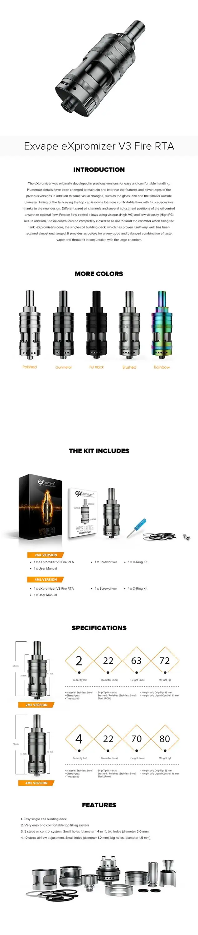 Exvape eXpromizer V3 Fire RTA Specification