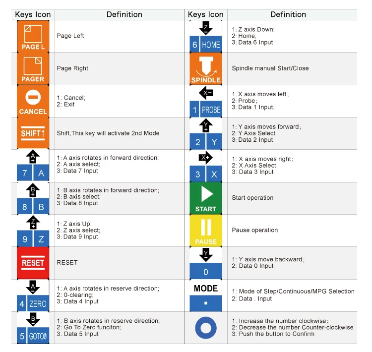 Only When in READY status,By Pressing START , the controller will start to run a G-code,then the status turn to “RUN”.And during the operation by handheld controllers of Jog operation,the status turns to “JOG”MODE.