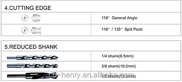 | 4. Point angel: 118degree, 118degree split point, 135degree split point |