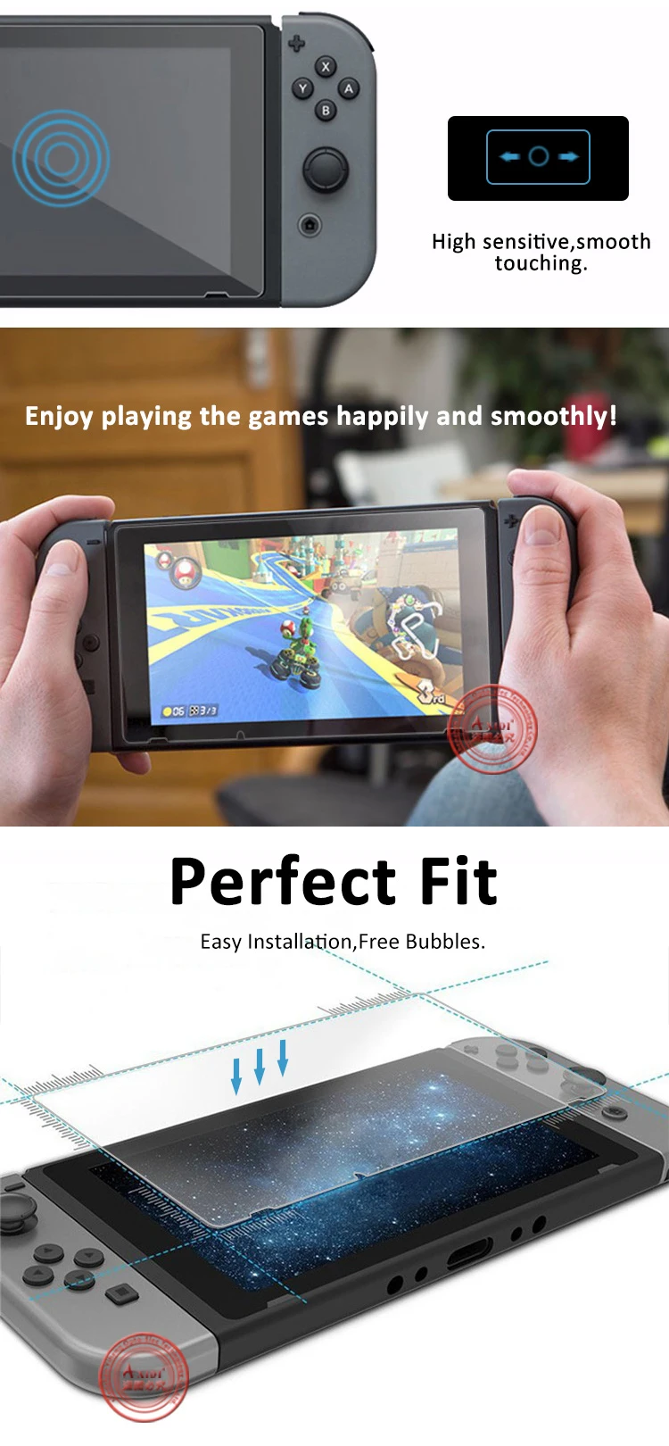 | 1. Good smooth Feel and sensitive touching. 2. Silicon Glue, Automatic adhesive, fastly remove bubbles, free bubbles. 3. High anti-scratch, hardness is about 9H 4. Strong Anti-shock function, perfectly protect your For Nintendo Switch screen well. 5. Good softness,bendable . 6. Never be broken, very durable. 7. Anti-oil, Good hydrophobic function. 8. Soft, can be repeatedly used, no residue glue. 9. Fast leading time,Light weight, Low transportation costs and low transport requirements. |