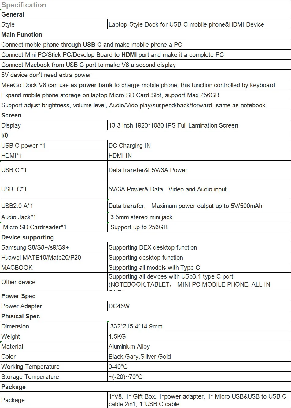 | Compatible: | full-functional type C port device; | Built-in Speaker: | Yes; |