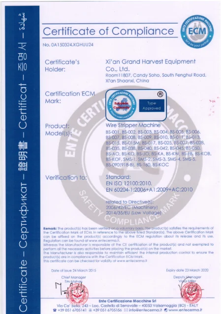 XI'AN Grand Harvest Equipment Co., Ltd. is speislized in producing various of recycling equipments, including cable recycling machines,mainly inclduing: