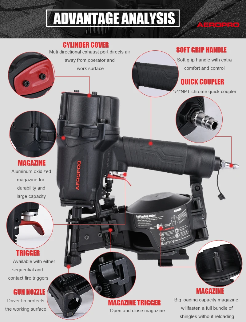 | Power Source: | Pneumatic; | Type: | Coil Nail Gun,Roofing Nailer; |