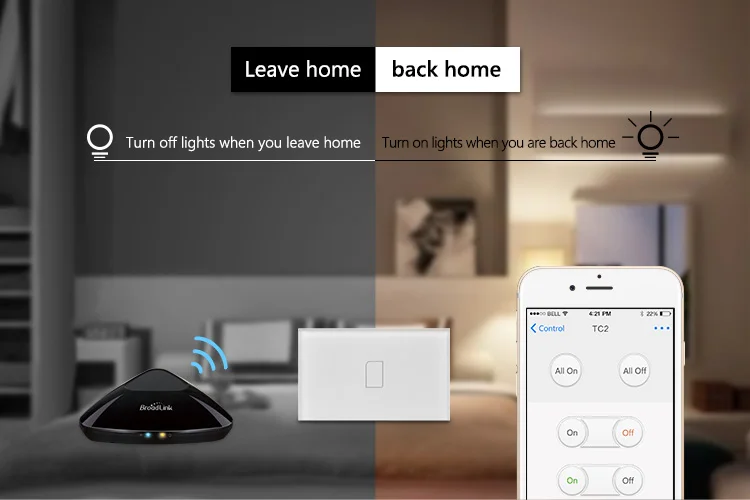 Broadlink TC2 US 1/2/3Gang Alexa Wifi Wireless Panel IOS Android Remote Control Smart Home Wall Touch Screen Light Switch