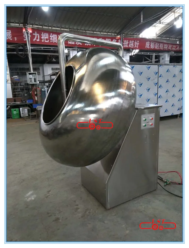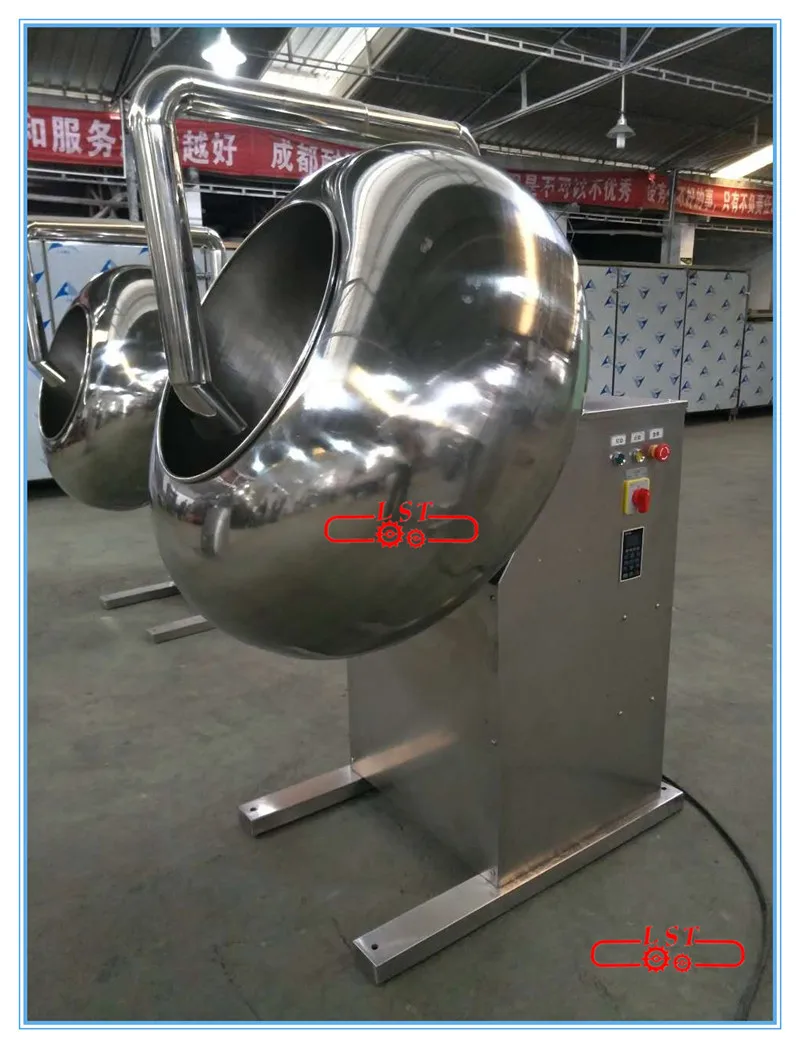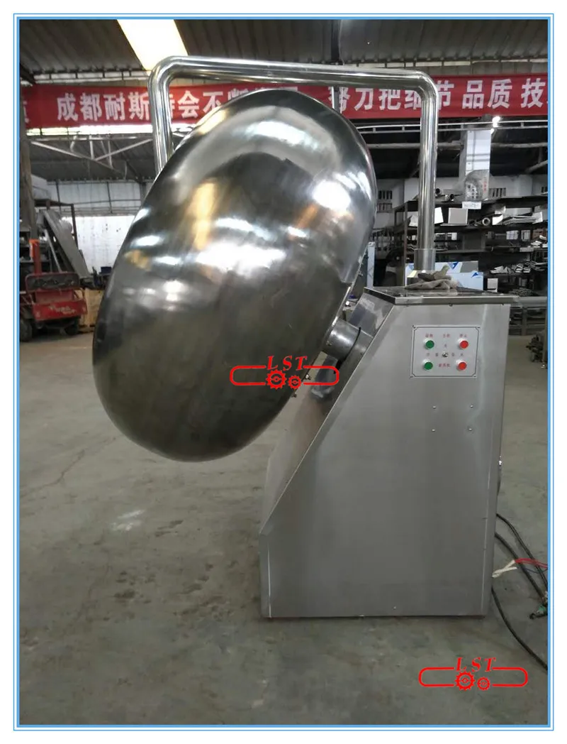 This machine is used for sugarcoat tablets and pills for pharmaceutical and food industries.It also can be used for roll-fry beans,nuts or seeds.The leaning angle is adjustable, and electrical stove or gas stove can be placed underneath as heating device.