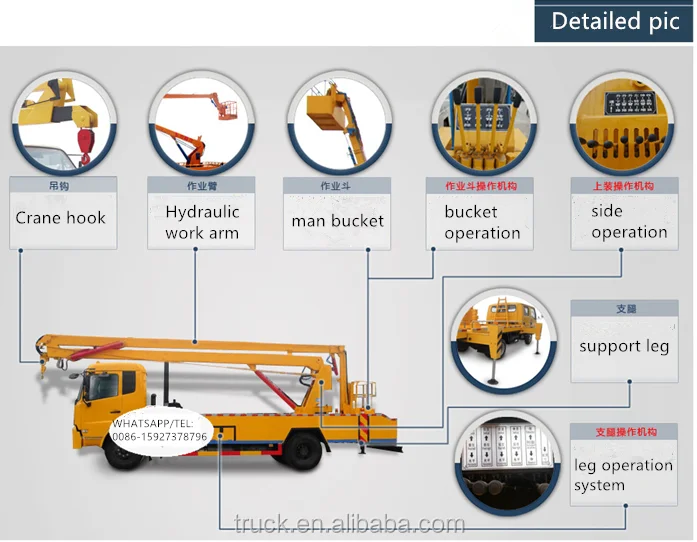 | Steering wheel: | left,right hand drive trucks; | Working height: | 10-24m aerial platform; |