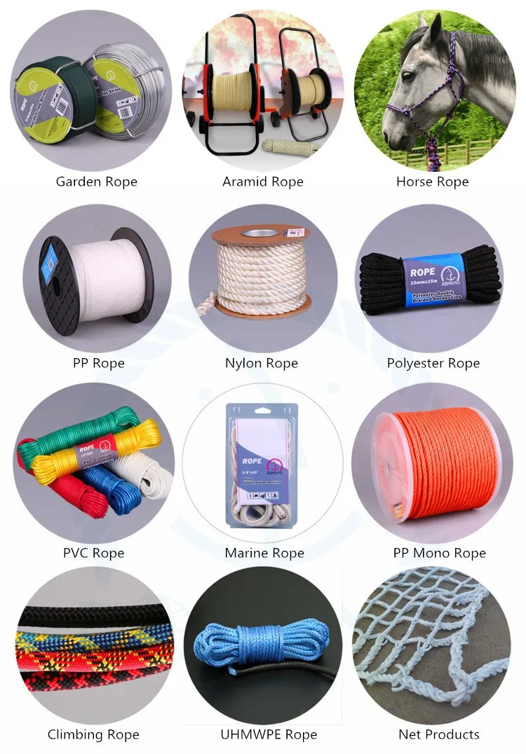 UHMWPE, Manila, Polyester, Nylon, PP, PE, Cotton, Sisal, Jute, Aramid Kevlar |
