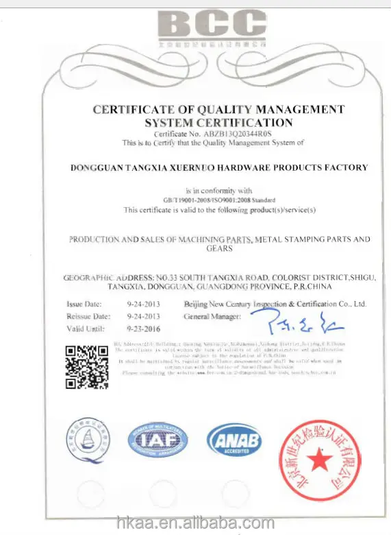 A1:we are ISO 9001-2008 certified firm. we have the integrated system for industrial parts quality control. We have IQC (incoming quality control), IPQCS (in process quality control section), FQC (final quality control) and OQC (out-going quality control) to control each process of industrial parts prodution.