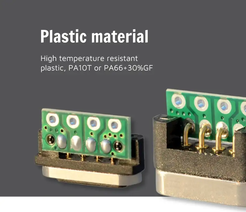 - The contact pins is 5μ gold plated and magnets is Nickel-Plated;
