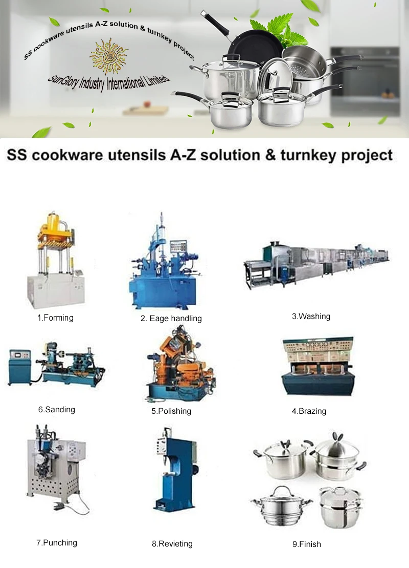 Sunglory factories have 10 to 50 years experiences on cookware utensils forming, washing, polishing, sanding and brazing.
