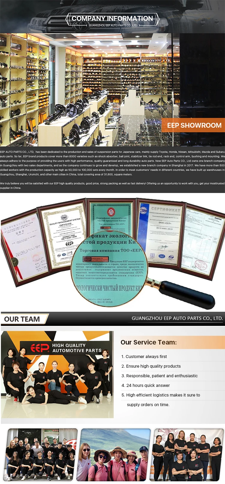A: Our Company started since 1995, there is about 21 years history for us in auto parts business field. |
