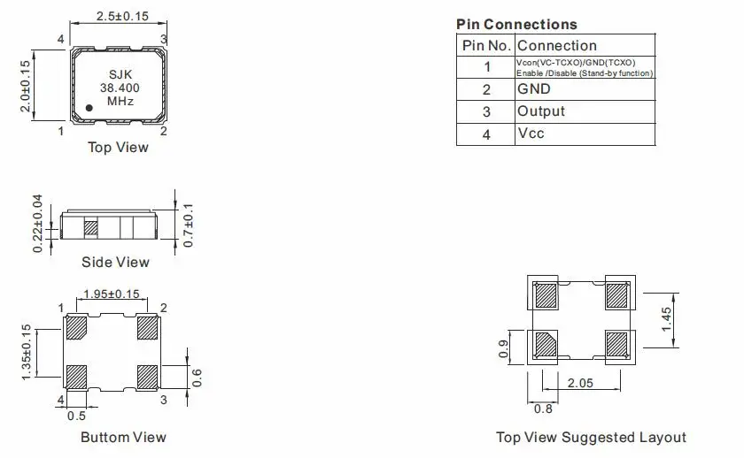 2520size, 0.80mm high SMD TCXO /VC-TCXO