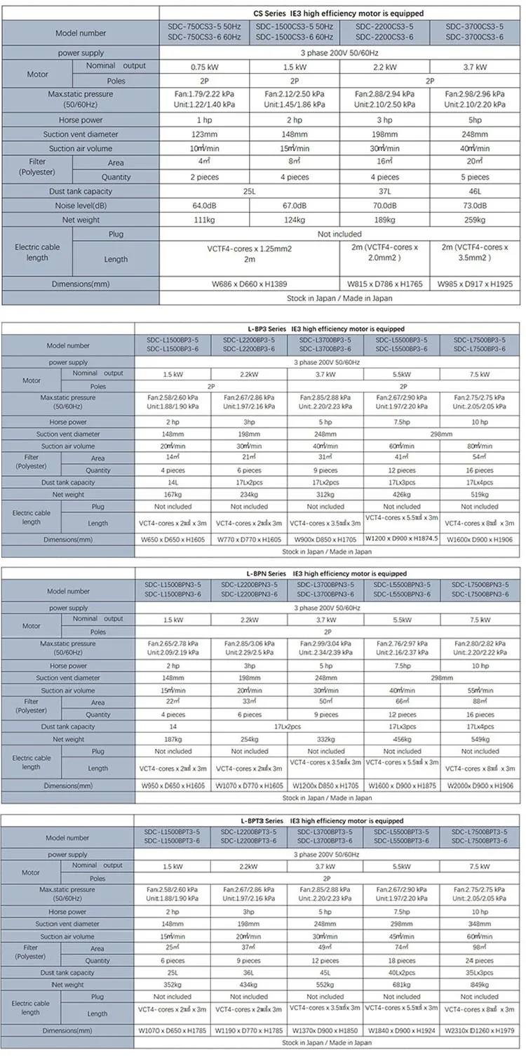 | Suction air volume | 3.5m³/min | |||||||||||||||||||||||