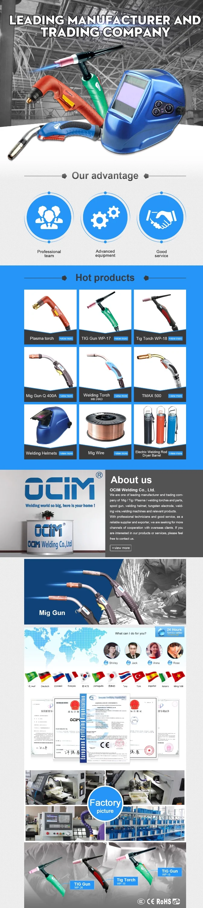 1. OCIM Welding is a trading company and also a manufacturer of welding wire, welding torches and parts, welding machines and relevant products. We not only produce welding equipments, but also supply professional welding technology solution in welding procedure.