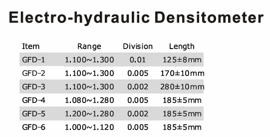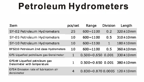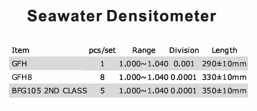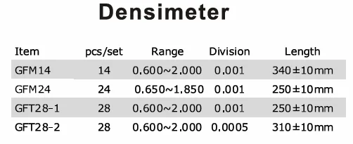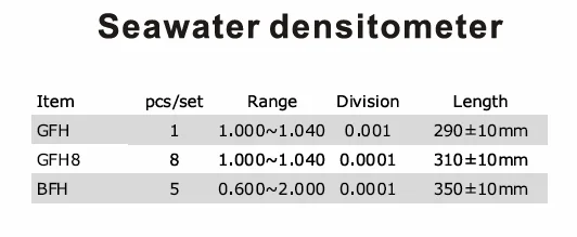| 3 | 28 pcs densimeters | 0.600-2.000 | 0.0005 | 330±10mm | |||