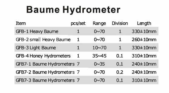 | 2 | 10 pcs saccharometer with thermometer | 0-70 | 0.1 | 375±10mm | |||