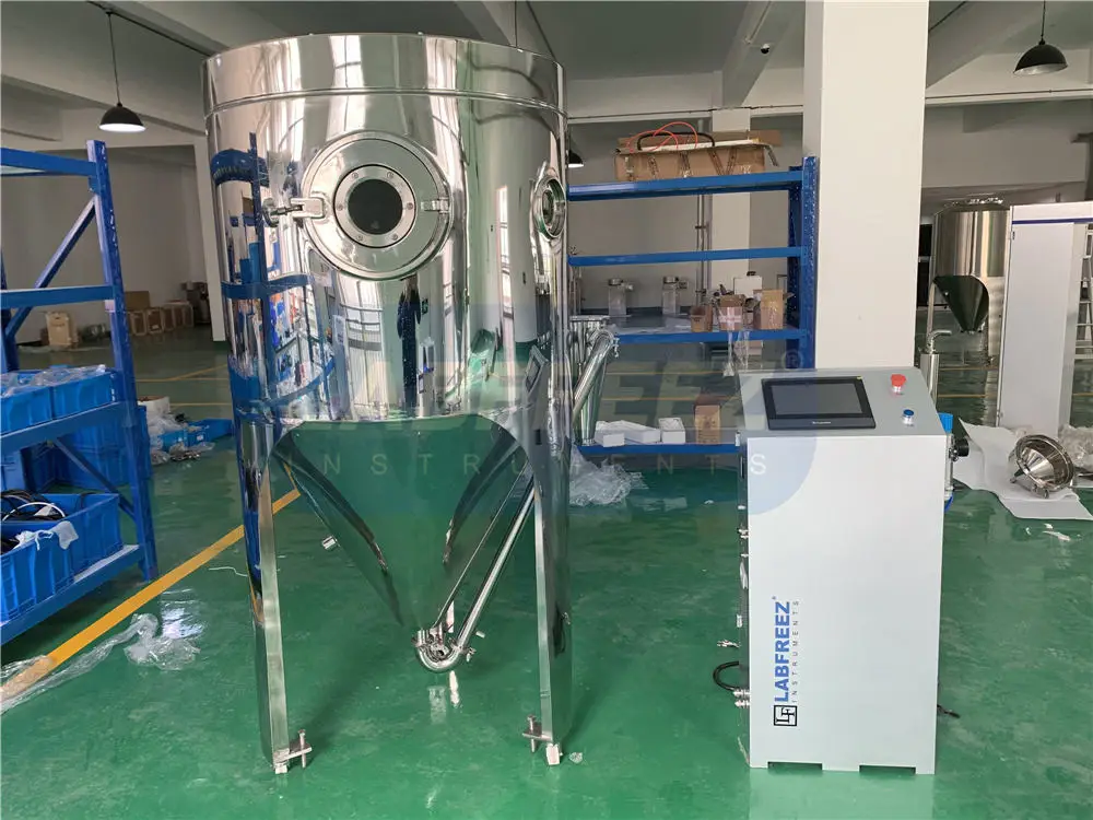 SD-05A 5l pilot spray dryer machine is based on the originaltest spray dryer of LABFREEZ, through a large number ofresearch and learn from the Danish Niro and Anhydro spray dryer design concept, andthenewly developed upgraded version of the pilottype spray dryer. Among them, SD-05A has a stable appearance, beautiful atmosphere, convenient operation, patent shape design, high quality technology level and new control system, which meets the needs of morelaboratory and pilot users, and even can replacethe imported spray dryer