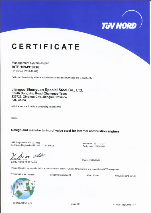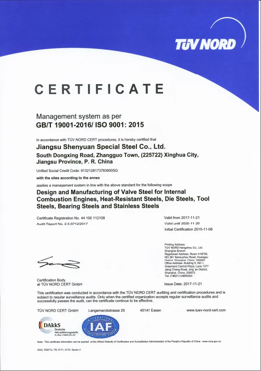 Shenyuan group is a leading manufacturer of engine valve steel in China. It has passed ISO9001 and TS16949 certification,and its products include: