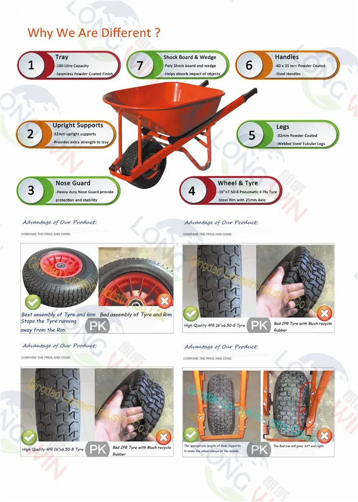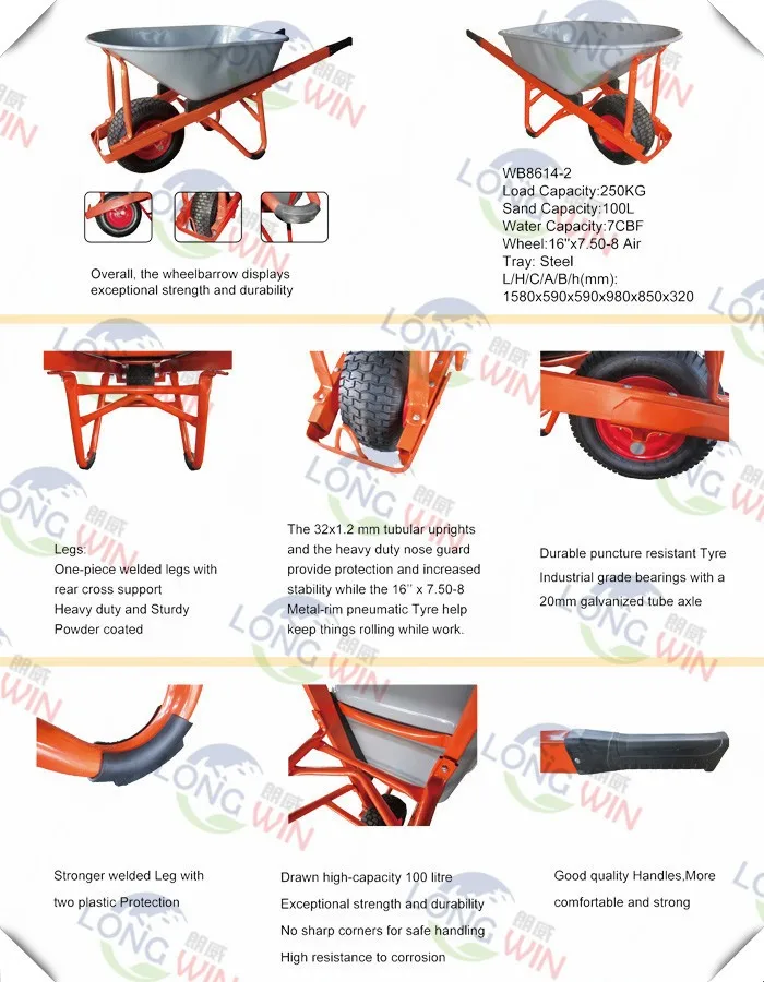 | Sand capacity: | 7cuft construction wheelbarrow; | Brand Name: | longwin wheelbarrow; |