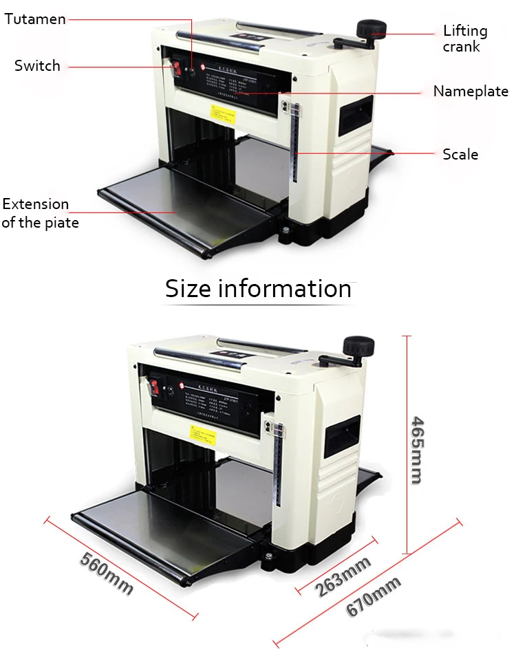 | Single package size: | 64X38X50 cm; | Product Name: | Wood Planer Machine; |