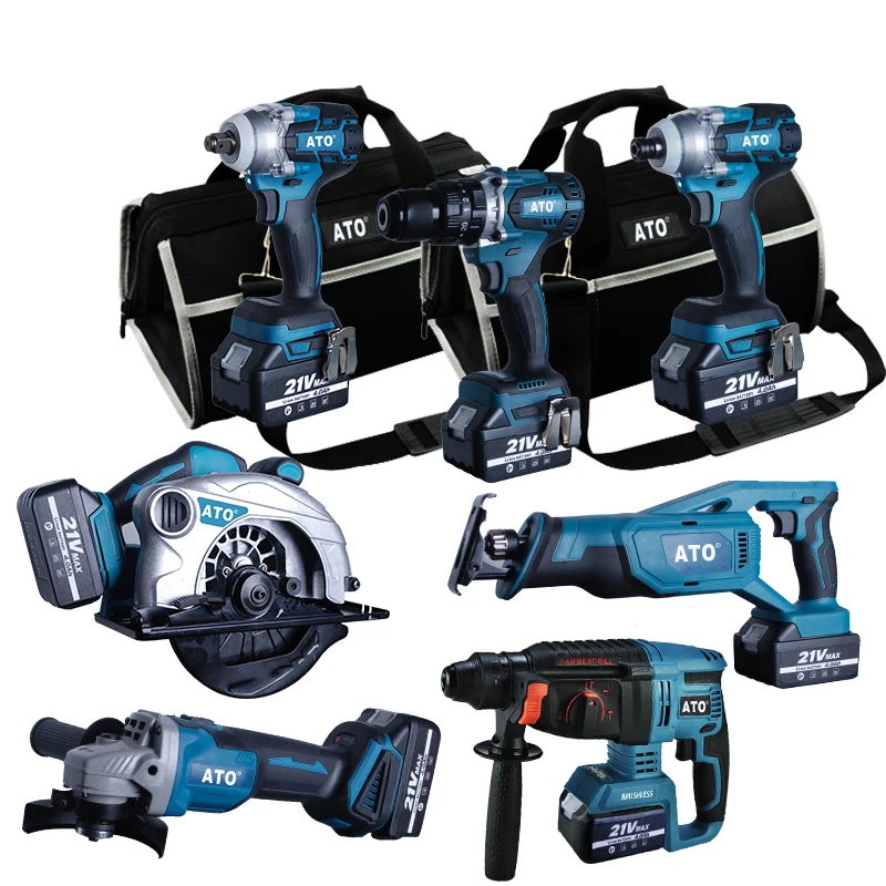 ATO CB2007 Seven in One Battery Brushless 4.0AH Cordless Impact Drill Wrench Saw Angle Grinder 18v 21v Combo Kit Tools Set