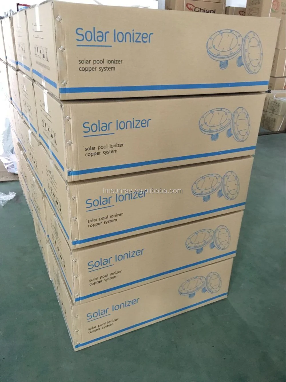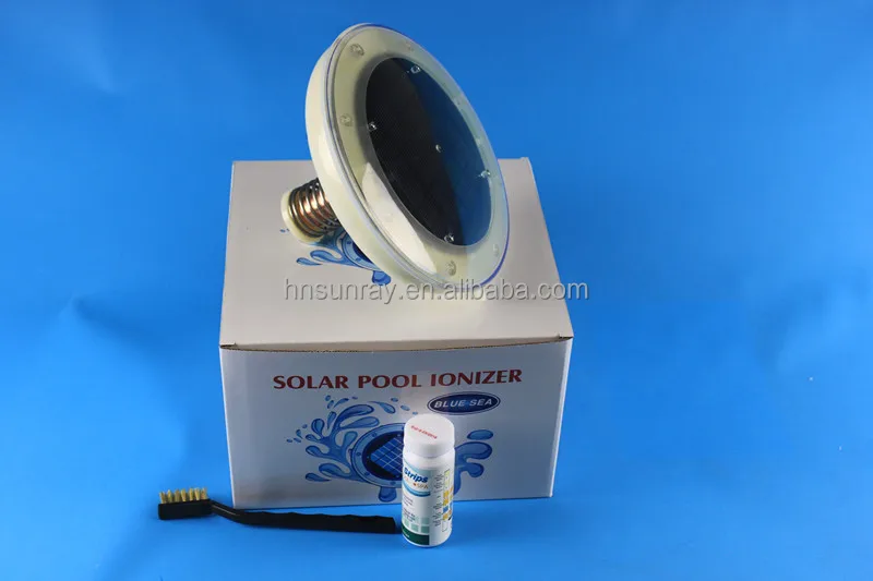 solar panel on the top. The energy from the sun activates the ionization of the anode. The ionization process limits the growth microorganisms and removes unwanted mineral such as calcium in the pool water.