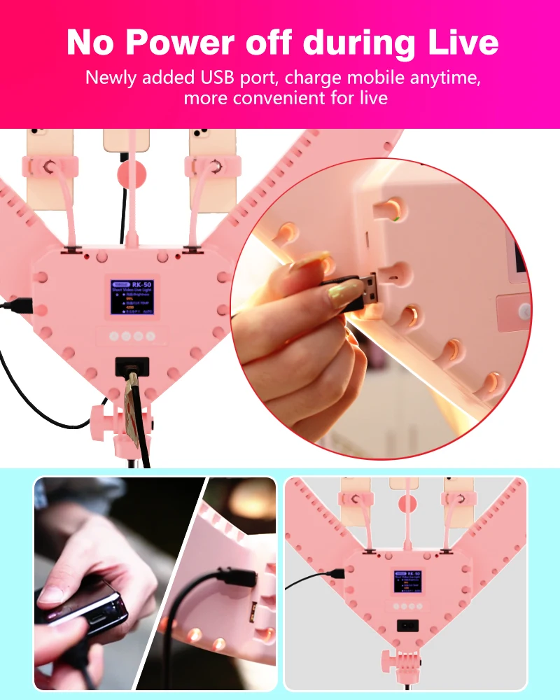 4: The world's first headlight ring can be powered by 220V and outdoor USB can also be powered by the fill light. The main body button control + wire control + remote control control control, while the three control fill light