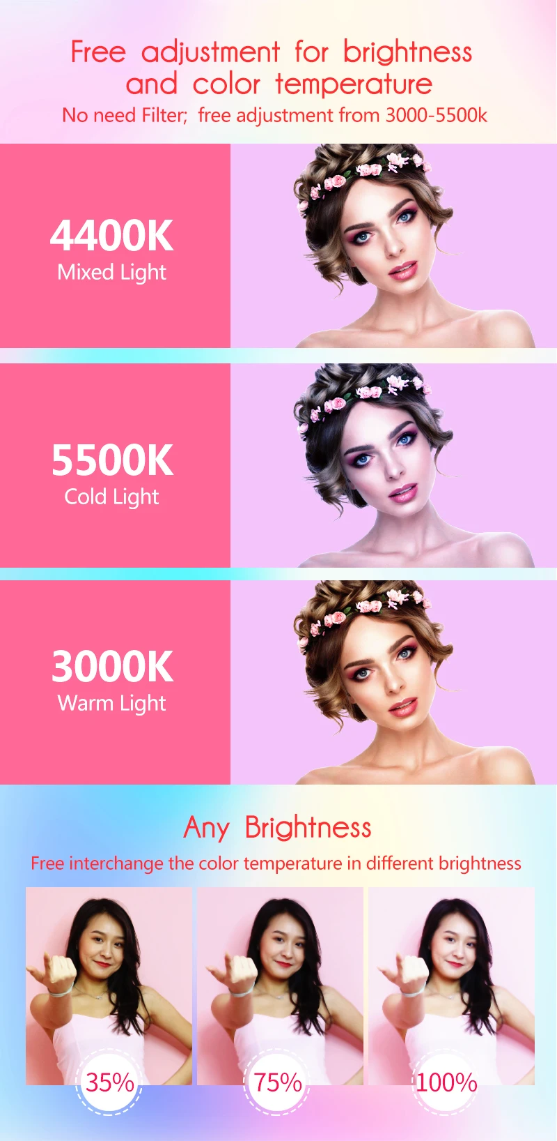 | Color Temperature: | 3200-6500; | Single package size: | 54X53X12 cm; |