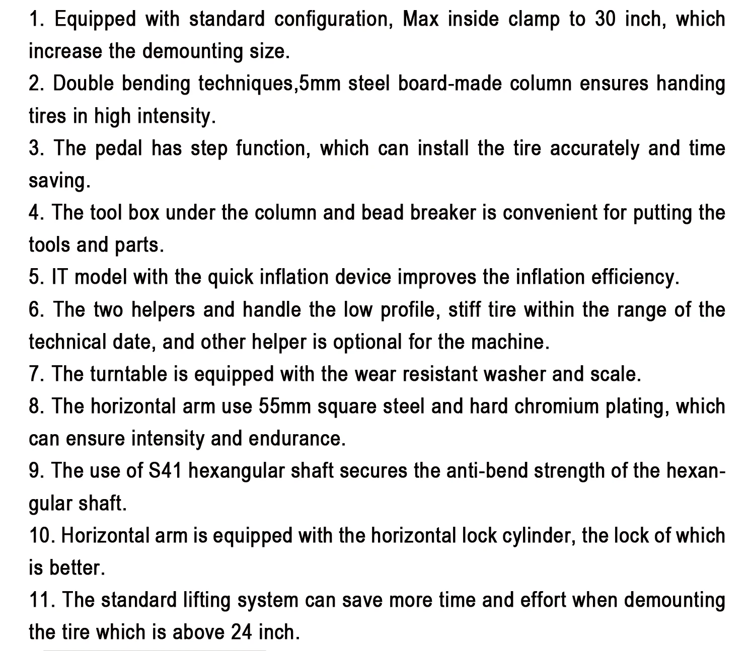 | Rim clamping from inside: | 17'' to 30''; | Warranty: | 24; |