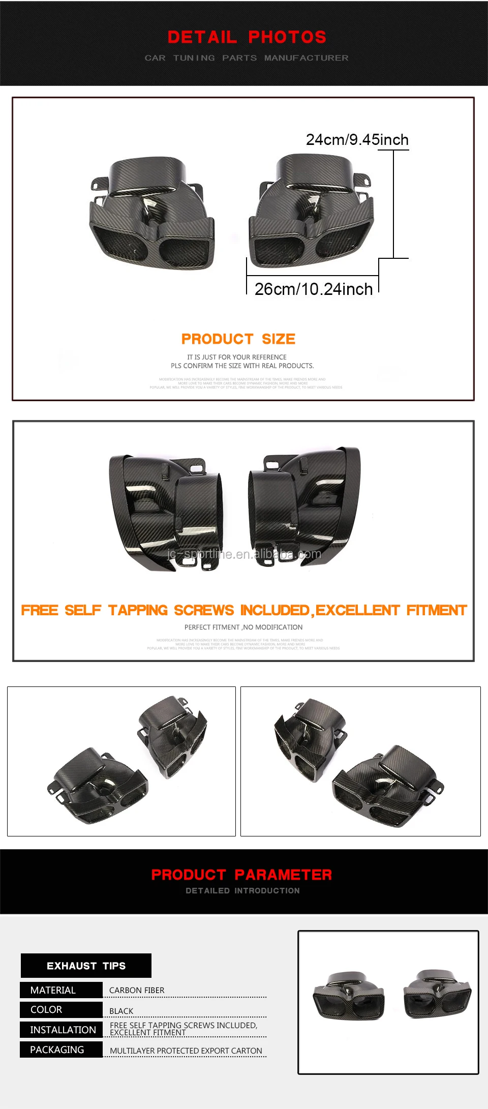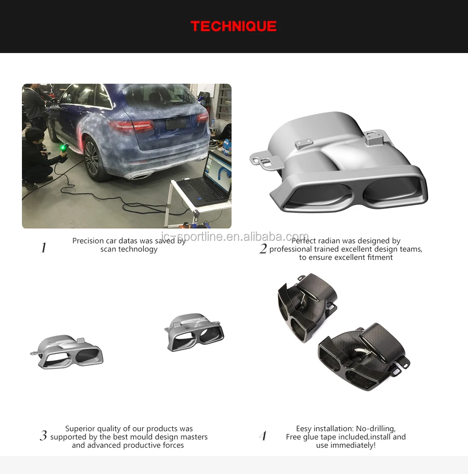 2. High quality dry carbon fiber material W205 Exhaust Pipes, no extra bracket included.