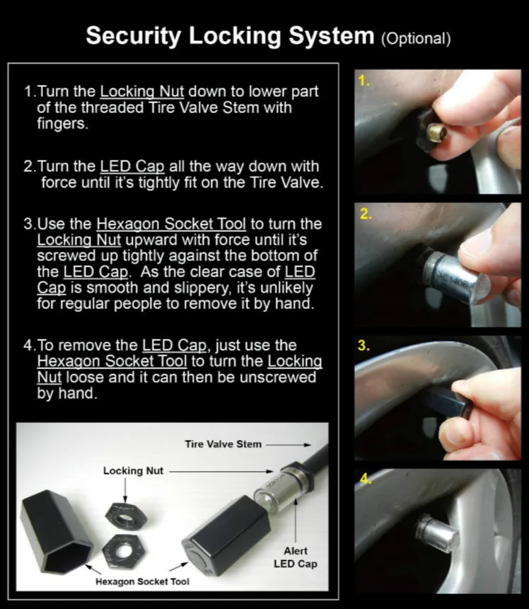 Sec. 1 : When the LED Cap is installed on the tire valve, the LED remains unlighted.