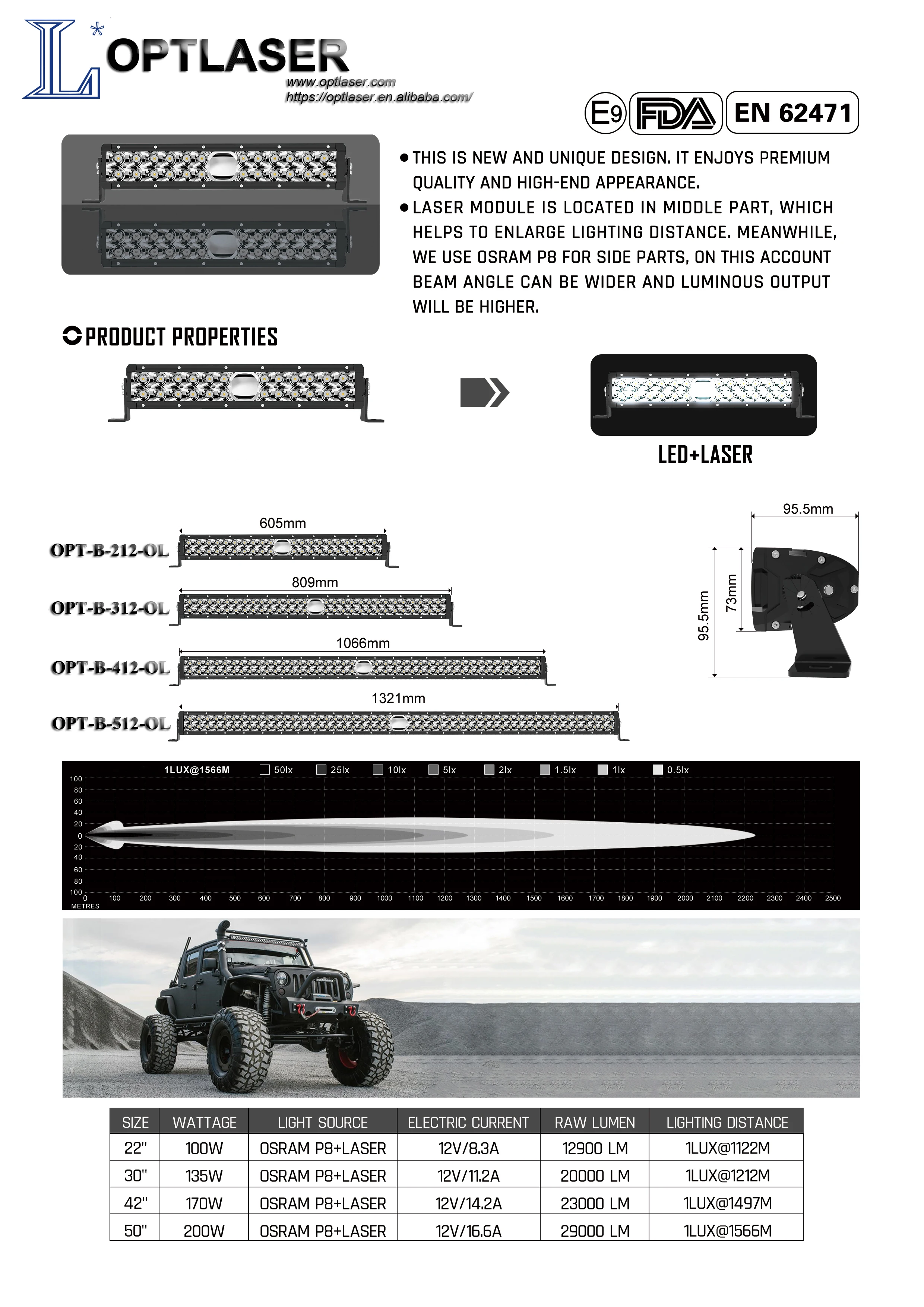 | Car Fitment: | Dadi,FORD (CHANGAN),LUXGEN,LANDWIND (JMC),Toyota (FAW),BEIJING BENZ (BBDC),Autocar LLC.,Great Wall,Prevost MD,EMGRAND (GEELY),Atlas Copco Off-Road & Mining,AUTOCAR,FORCE,HAIMA (FAW),CHANA,MERCEDES-BENZ (BBDC),JONWAY,Lamborghini,Maserati,CHEVROLET (SGM),ISUZU,KTM Offroad Motorcycle,Prevost Medium & Heavy-Duty Trucks,GMC,FAW JILIN,Oldsmobile,UAZ,NISSAN (ZHENGZHOU),Aprilia Street Motorcycle,GEELY,Hummer,JEEP (BJC),Ram Truck,DS (CAPSA),JAC,FENGXING (DONGFENG),Auverland,JEEP,KIA (DYK),Dongfeng Xiaokang,Laforza,TIANMA,FORD USA,GAC GONOW,ISUZU (JIANGXI),TIANQI MEIYA AUTO,SUZUKI,VW Truck,KAWEI AUTO,Buick,Aprilia Offroad Motorcycle,BAOJUN (SGMW),BAIC WEIWANG,GAC,ARO,ANCHI; | Product name: | laser drive light bar; |