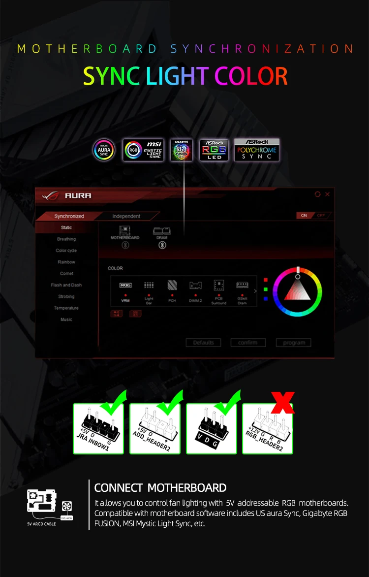 | Place of Origin: | Chongqing China; | Application: | PWM fan, 5V 3PIN ARGB product; |