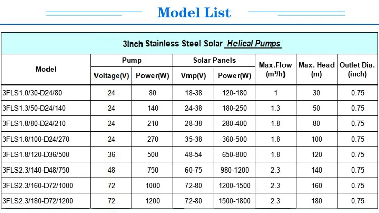 | Motor: | brushless dc motorsolar water well pumps; | Outlet dia: | 0.75 inch; |