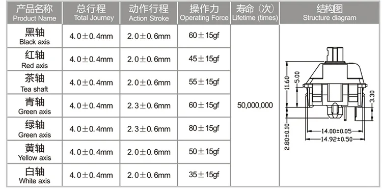 GATERON KS-3 Series Key Shaft Micro Switch Can Be Customized Shaft Body