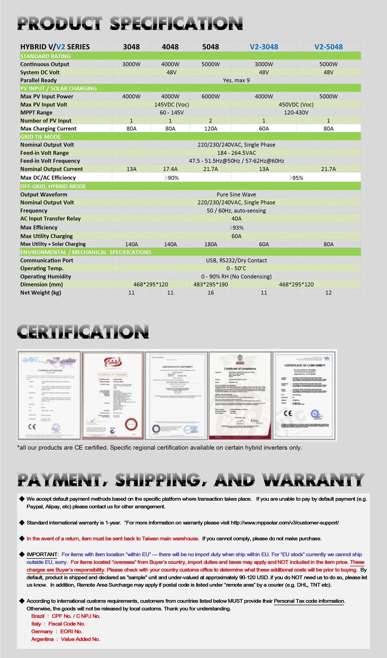 | Brand Name: | MPP SOLAR; | Warranty: | 1 year; |