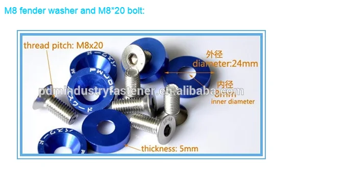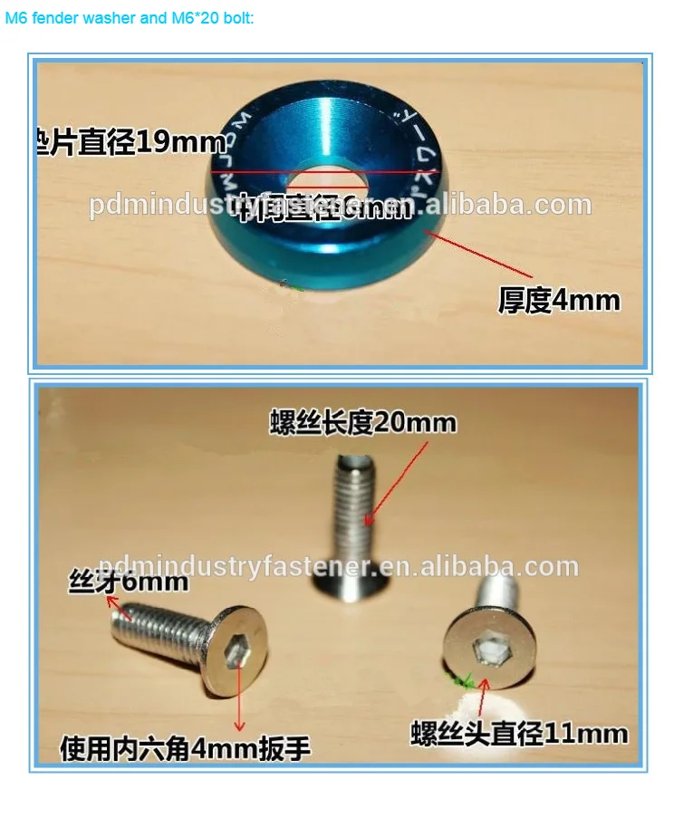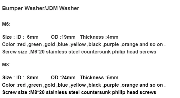 | Item: | Colorful JDM M6 aluminum washers fender washer; | Style: | countersunk; |