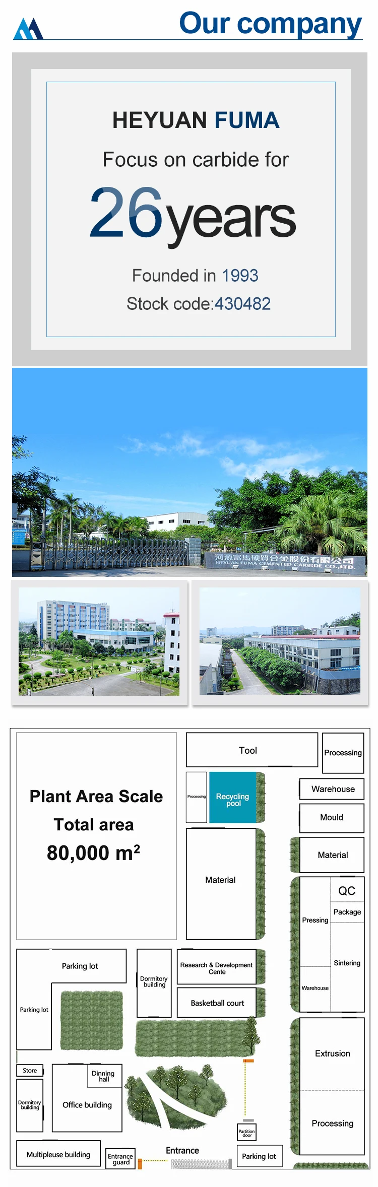 A1.HEYUAN FUMA CEMENTED CARBIDE CO.,LTD is a professional manufacturer and innovator of tungsten carbide products, from raw material to end products.