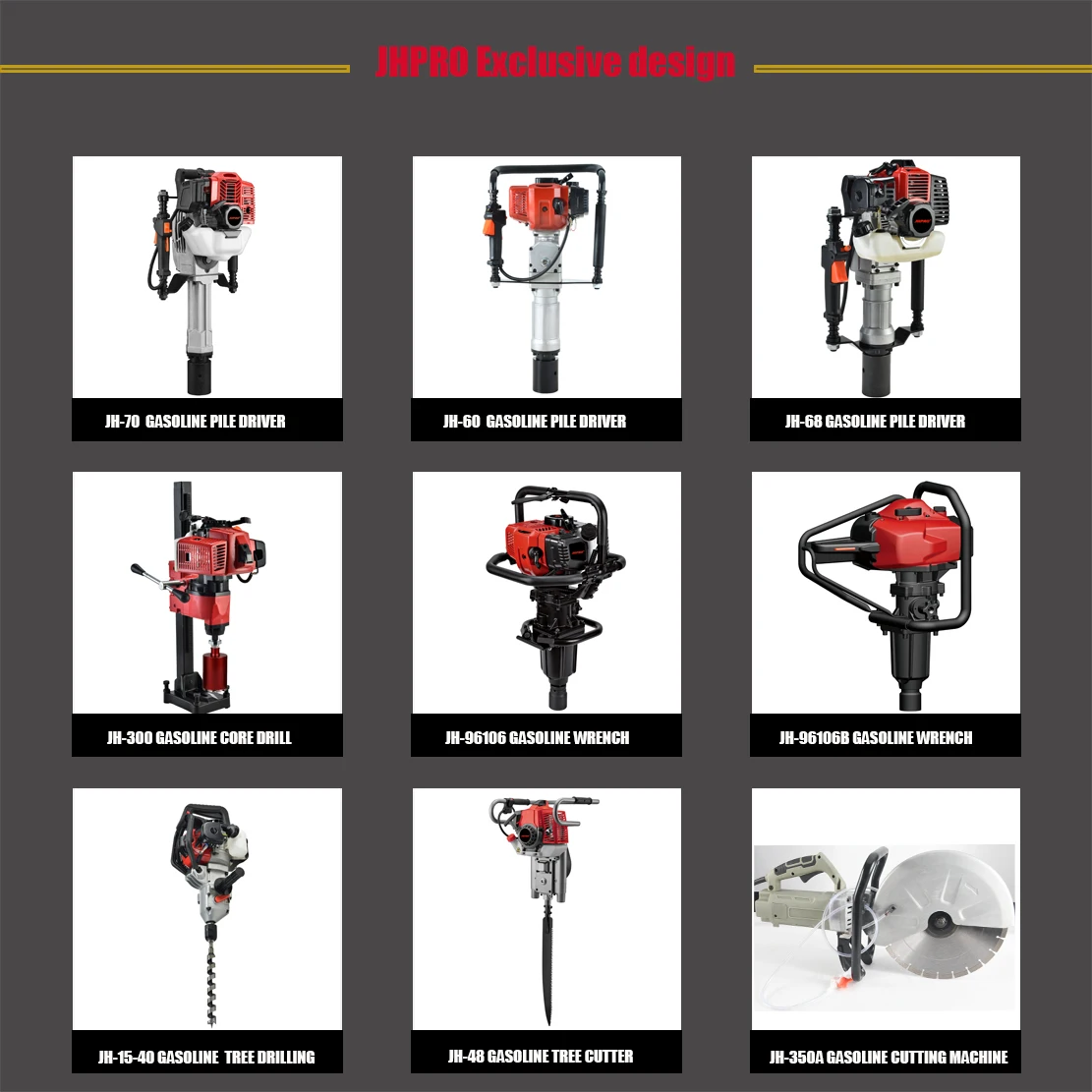Gasoline series include gasoline hammer, pile driver, angle grinder, core drill, tree mover and ground drill.