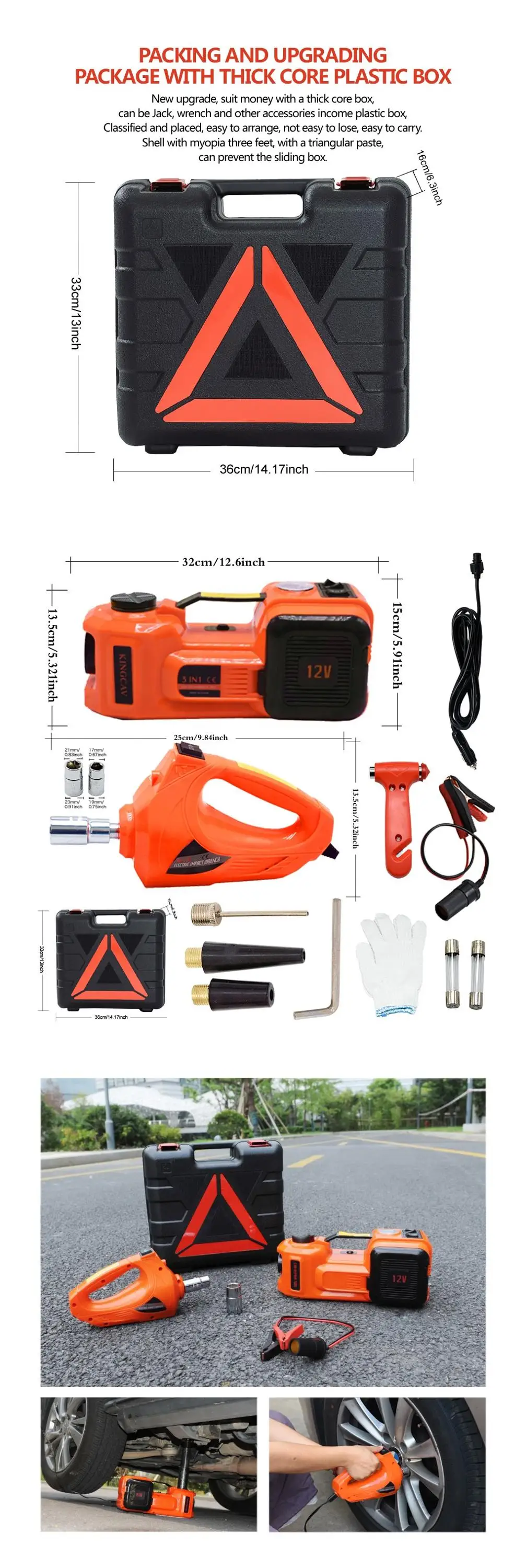 This product is a five-ton hydraulic 36cm electric jack + electric wrench set, suitable for all cars and off-road models, your best choice.