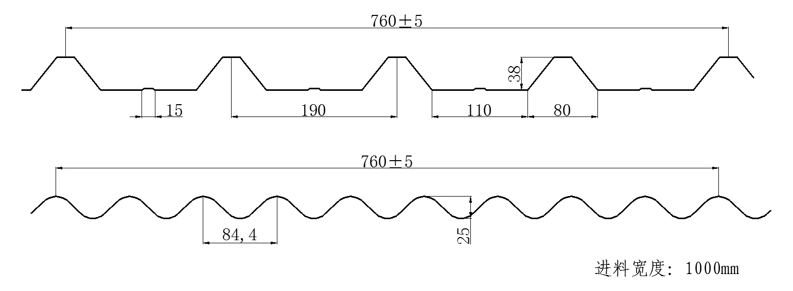 Double layer roofing tile machine profile drawings: