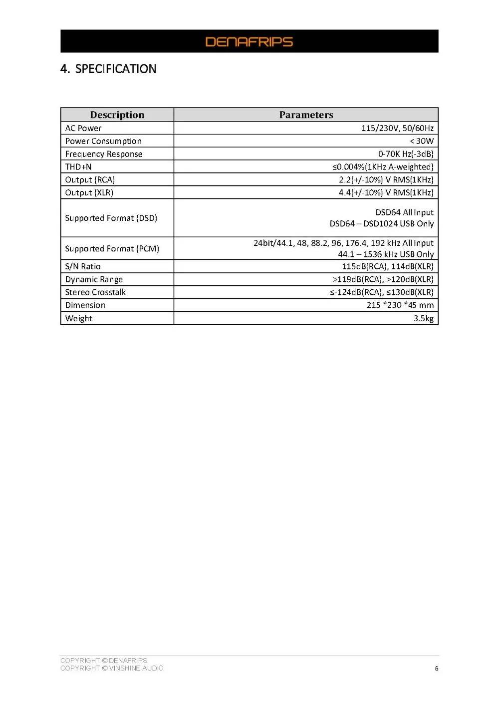 Dynamic Range : >113dB(RCA),>115dB(XLR)
