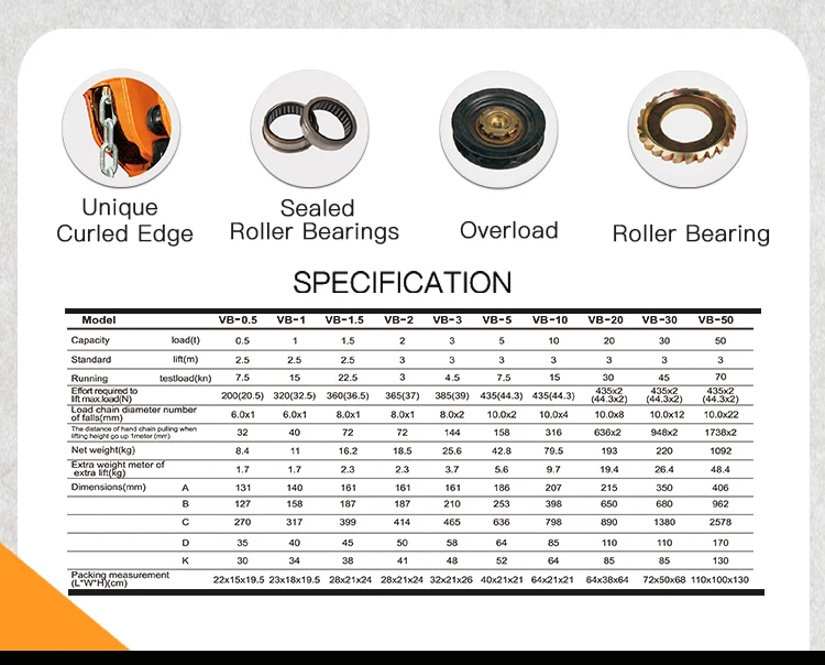 High quality CE 0.5 ton 2 ton Manual lifting Chain hoist Chain Block