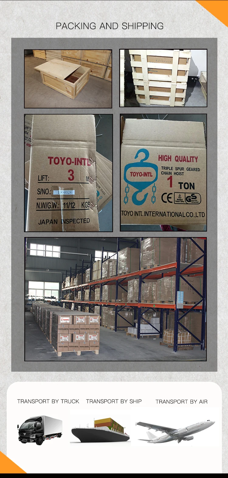 | Product name: | Chain Hoist; | Net weight: | 8.4-1092 kg; |