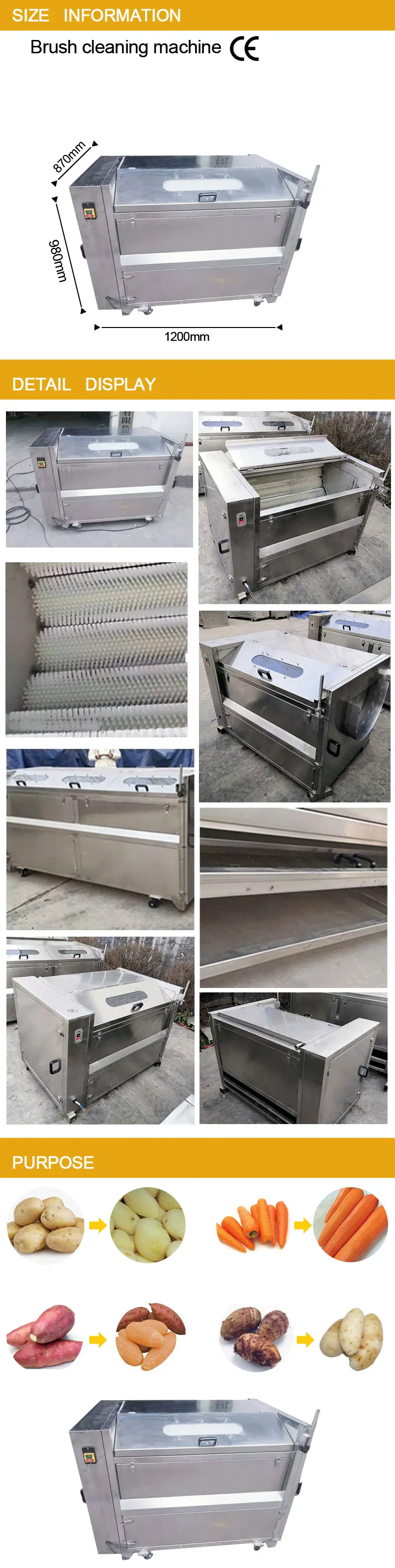 The machine is designed and manufactured according to the urgent needs of the development of the vegetable and fruit food processing industry. This machine is suitable for small production.It is suitable for cleaning and peeling carrots, ginger potato and related hard vegetables.