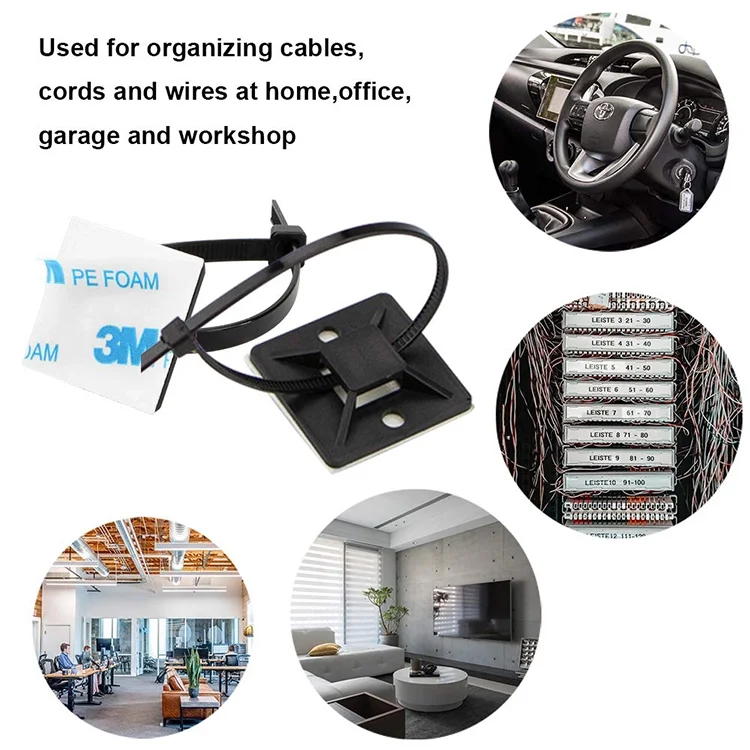 AOTENG Cable Tie Mounting Base Self adhesive Nylon Cable Tie