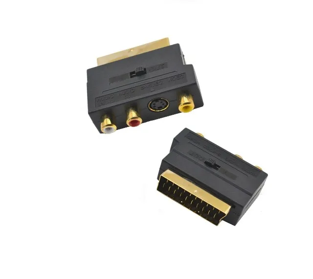 SCART Adaptor AV Block To 3 RCA Phono Composite S-Video With In/Out Switch GOLD