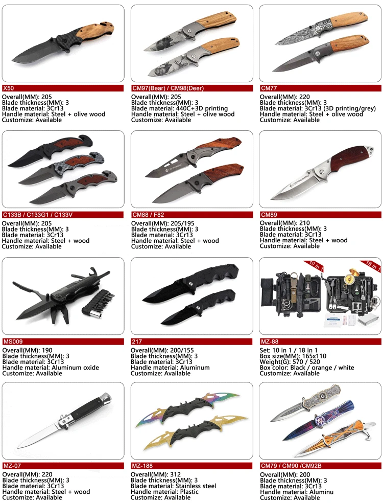 A:Sure, all blades material can be customized according to buyer’s request. We can change knives steel to M390, 420, 440C, D2, VG10, S35VN, etc.