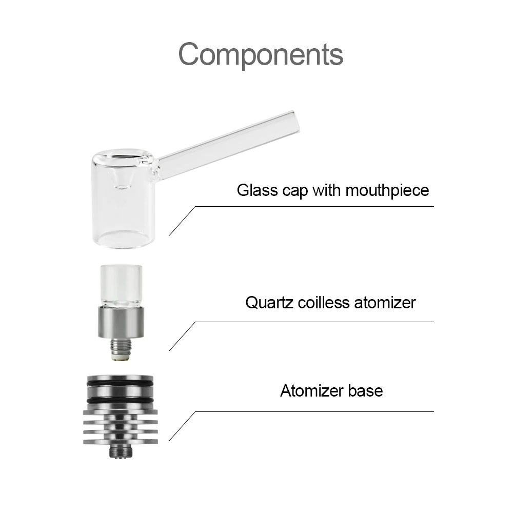 Features | 0.4ohm Quartz Coilless Atomizer tank, Long glass Mouthpiece |